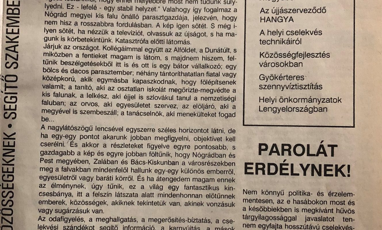 A közelmúltban Varsóban jártam, ahol az ország közéleti-közösségi szerveződéseiről, azok változásairól is módom volt tájékozódni. A lengyel társadalom pillanatnyi helyzete néhány különbözőségét, de több azonosságot mutat a magyaréval. Ők túl vannak a parlamenti választásokon - mely a Szolidaritás totális győzelmével végződött -, s készülnek a 90-es önkormányzati választásokra. (tovább…)