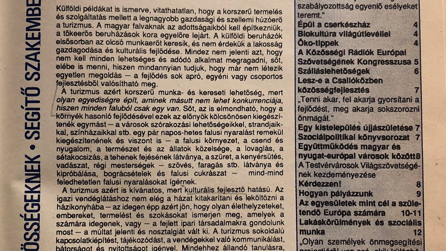 Először az egyesületekről. (tovább…)A Közösségfejlesztők Egyesülete 1991. májusától meghívott tagja a közös piaci országok közösségfejlesztési szakmai szervezeteit, kutatási- és képzési műhelyeit egyesítő Combined European Bureau for Social Development elnevezésű szervezetnek. (tovább…)
