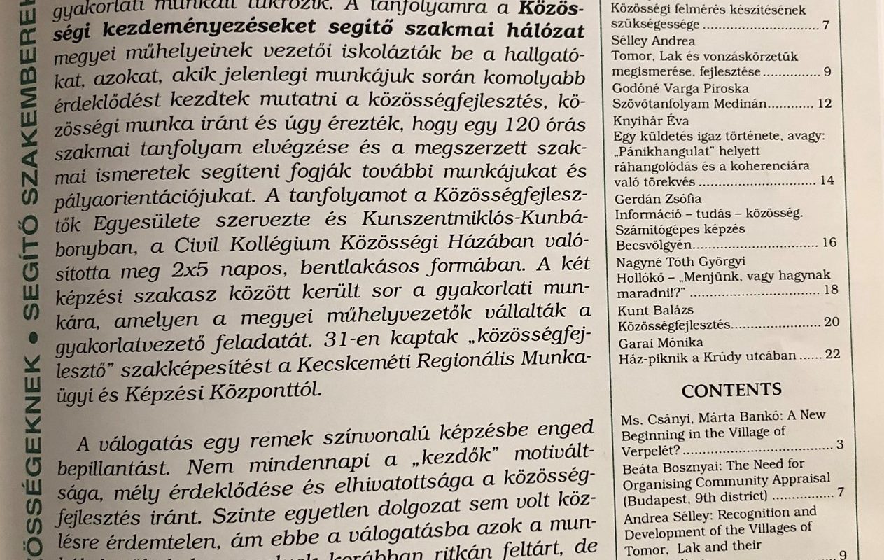 Széles a palettája a társadalomfejlesztő szakmai eseményeknek, s mi mégis úgy éreztük, hogy fontos, új színeket is ki tudunk rajta kikeverni. A Közösségfejlesztők Egyesülete, együttműködve a Magyar Művelődési Intézettel és a Civil Kollégium Alapítvánnyal, 2004-ben szervezett először kötetlen munkaformájú, családis légkörű, ám mégis komoly szakmai tartalmú nyári találkozót, megszólítva a közösségi munka különböző területein és szintjein dolgozókat. A találkozó célja a kapcsolatfelvétel, a közös téma/probléma/ügy keresése volt, és ez az új kezdeményezés mindjárt nagy érdeklődésre talált. A megerősítő visszajelzéseken és a nyári találkozót követő szakmai megkereséseken felbuzdulva 2005-ben újra megrendezésre került a nyári egyetem, felvonultatva az elmúlt időszak társadalmi akcióit, szervezőiket, támogatóikat.