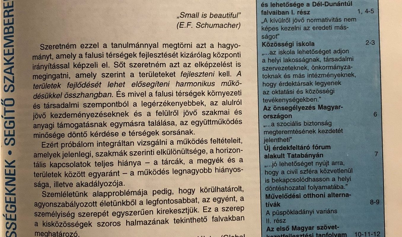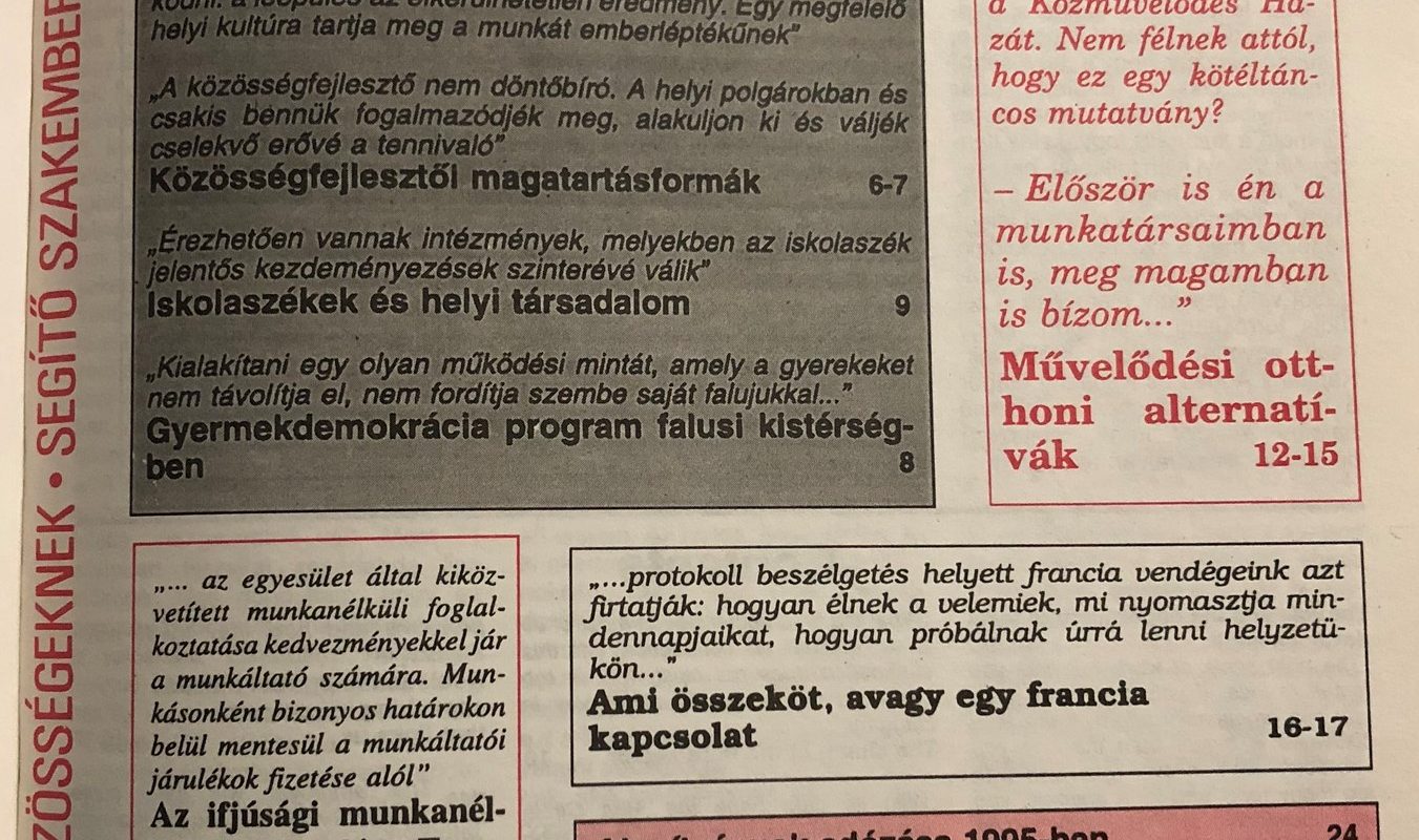 Regionális szennyvíztisztítóról és a megszüntetésre ítélt vasútvonalakról példálóztam a korábbiakban azért, hogy ezek nyomán a közösségfejlesztő helyét és szerepét, de leginkább hozzáállását és így magatartását megtaláljam. Említettem, hogy szerintem nem lehet elkötelezettje semmiféle olyan érdekcsoportnak, amely bármelyik megoldást szorgalmazza.